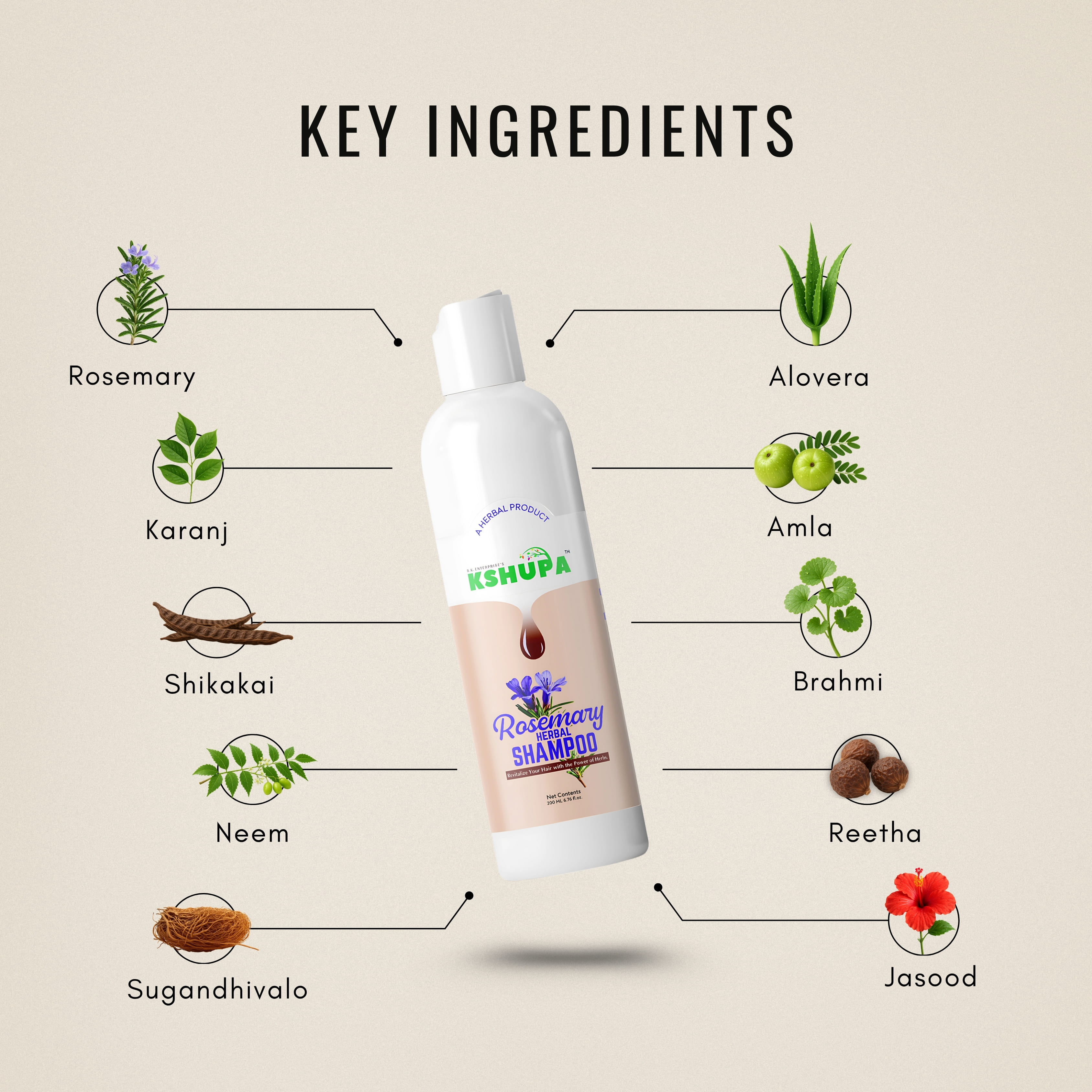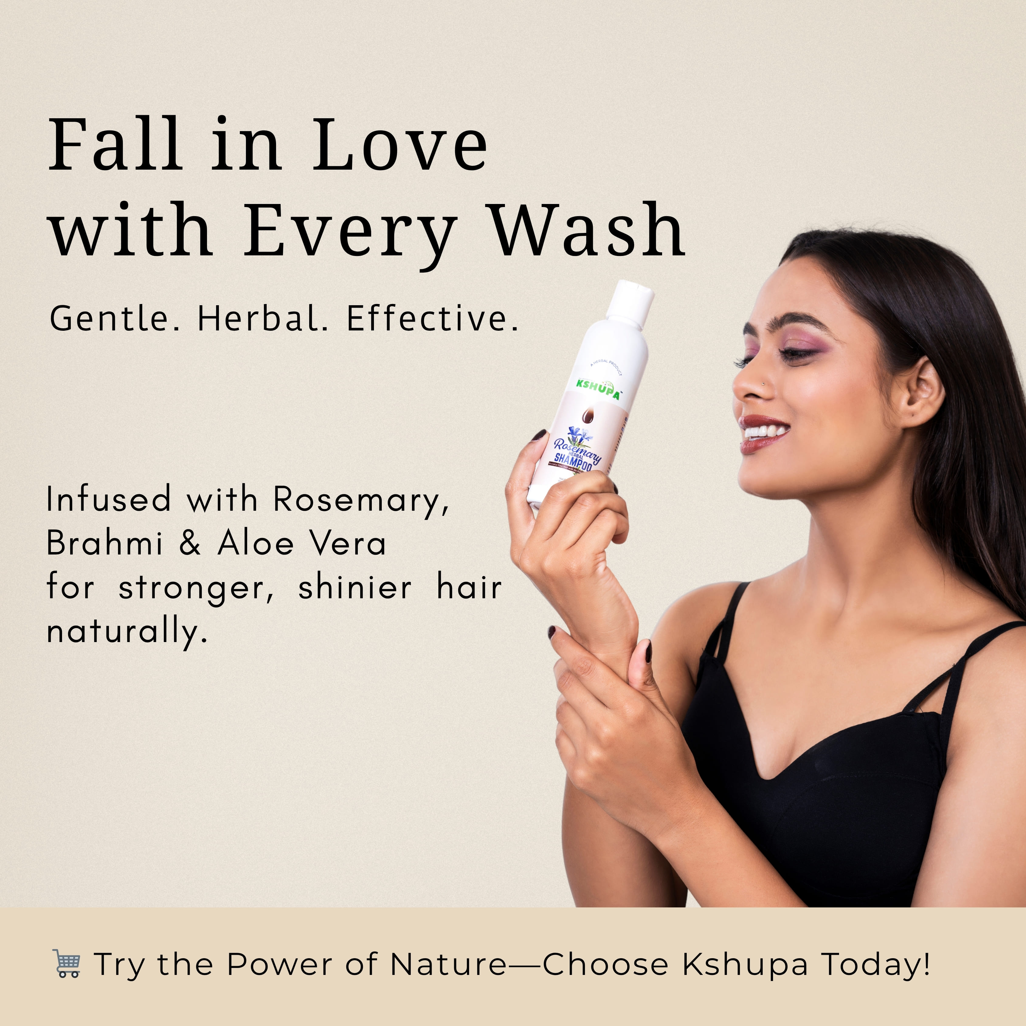 Embrace nature’s purity with Kshupa Rosemary Herbal Shampoo – your daily solution for stronger, healthier hair. FDA Approved. Cruelty-Free.