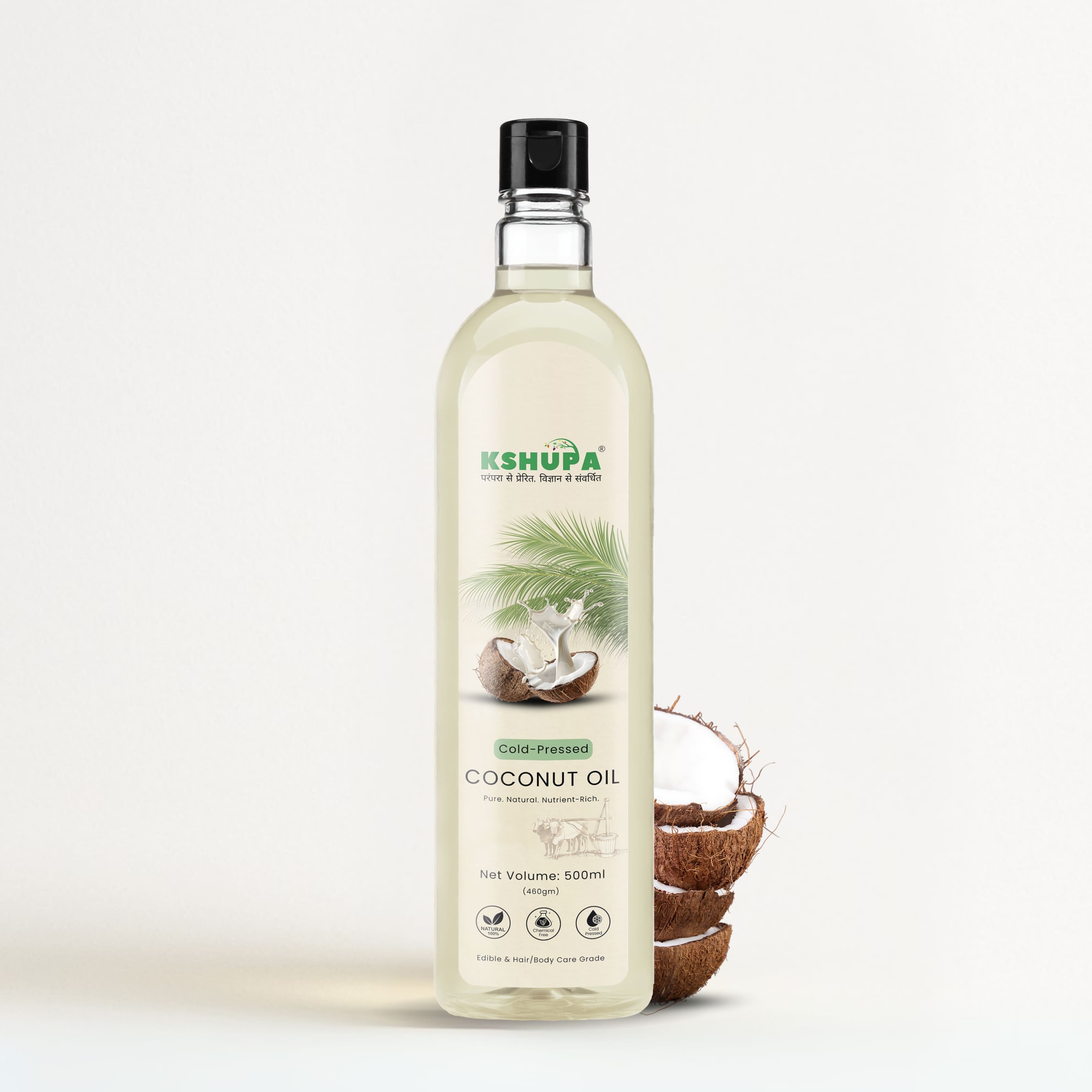 Coconut oil, known as Narikela Taila in Ayurveda, is a cooling, nourishing, and deeply moisturizing oil. It is Tridosha-balancing, especially beneficial for Pitta and Vata, and ideal for skin, hair, and body care. Its lightweight texture and cooling nature make it perfect for head massages, baby massages, and daily skin care.