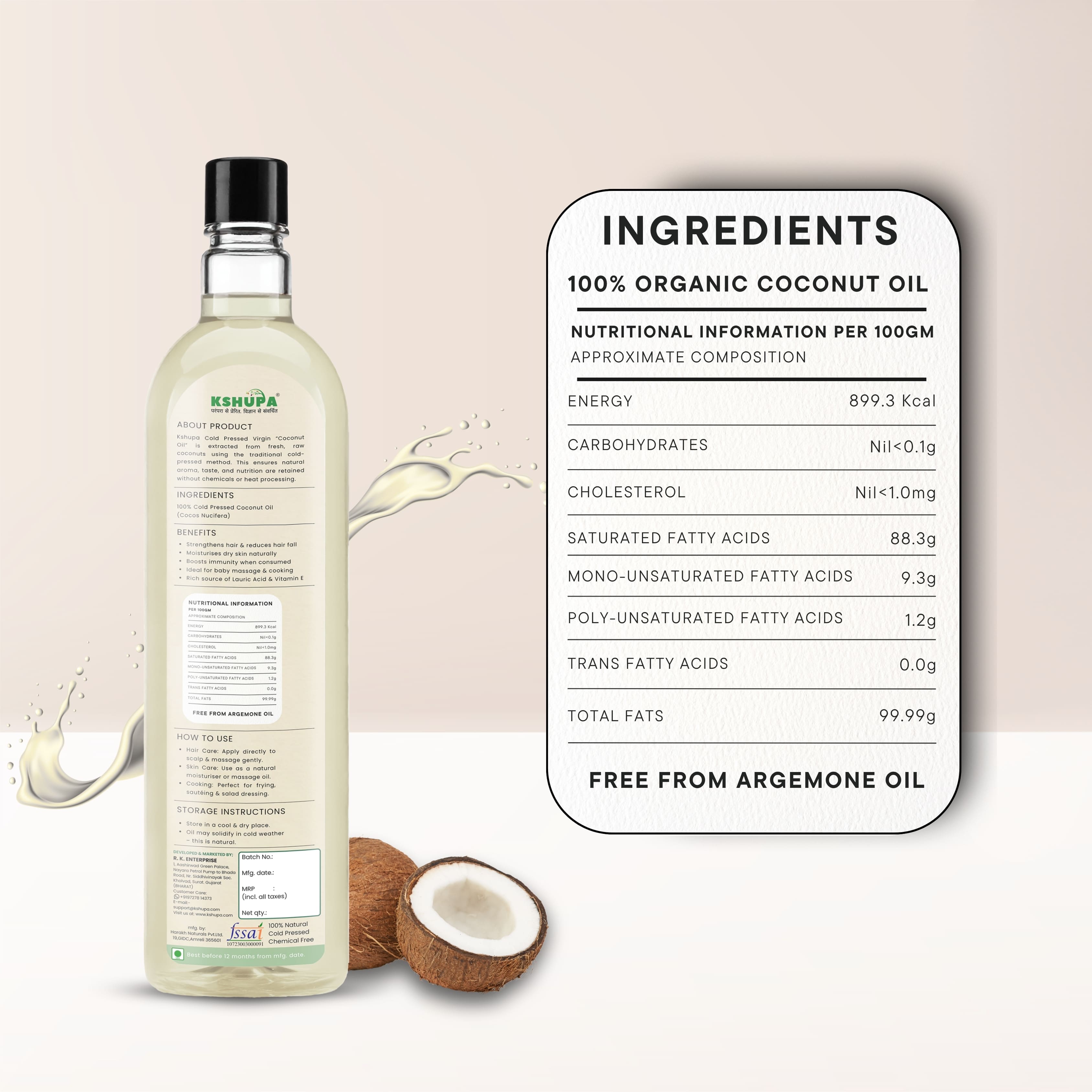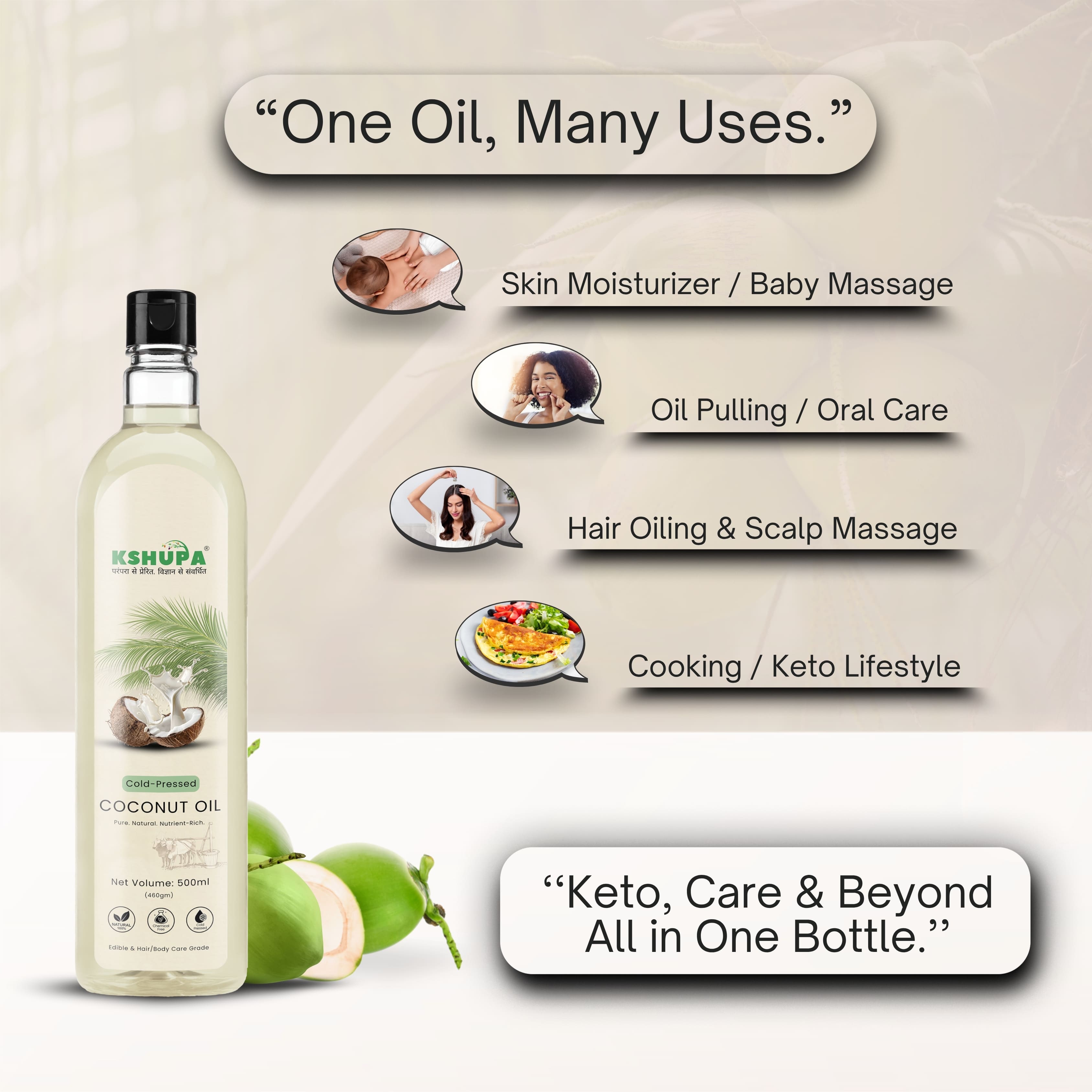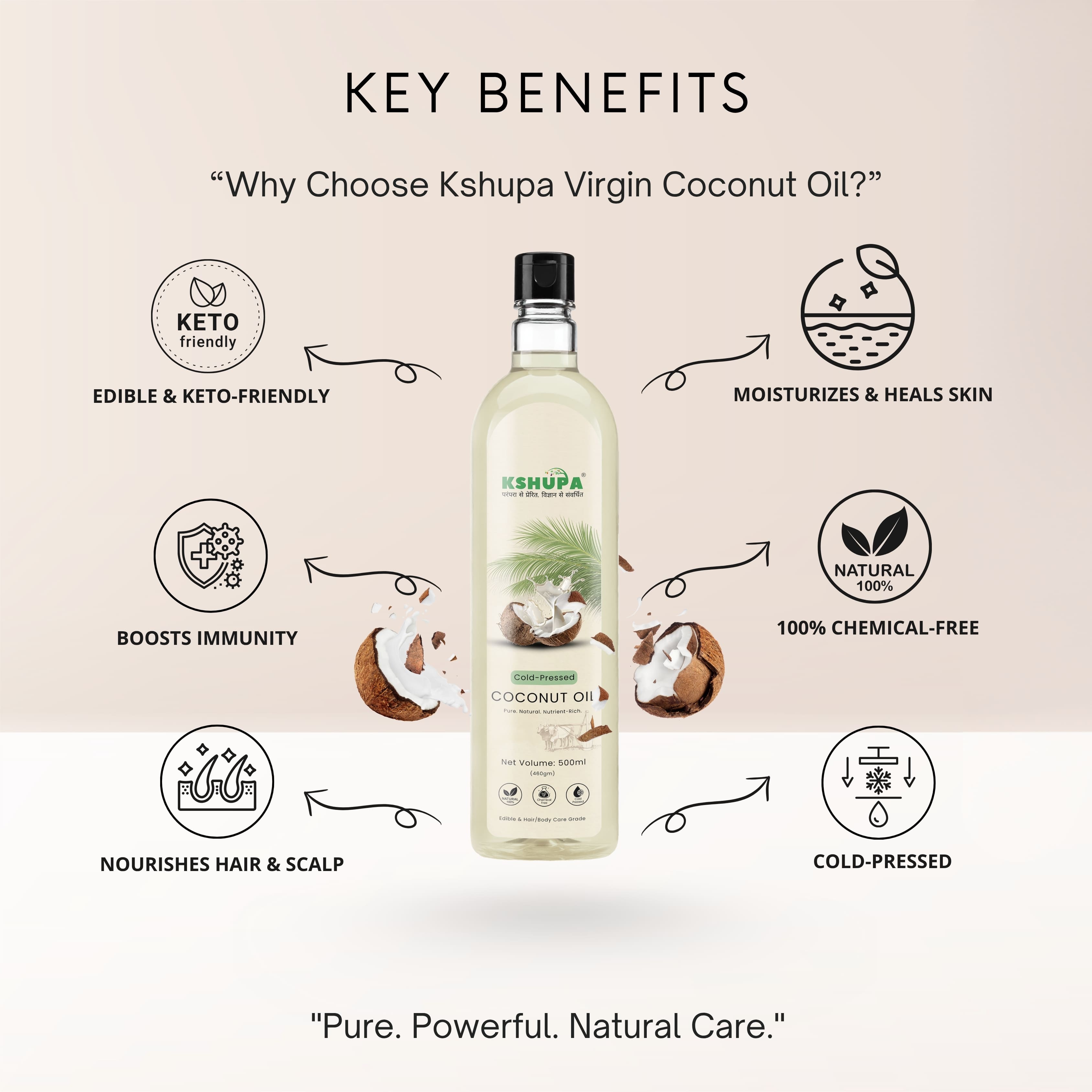 Lightweight, non-greasy, and fast-absorbing, Kshupa Extra Virgin Coconut Oil is the perfect natural care for your body, inside and out!