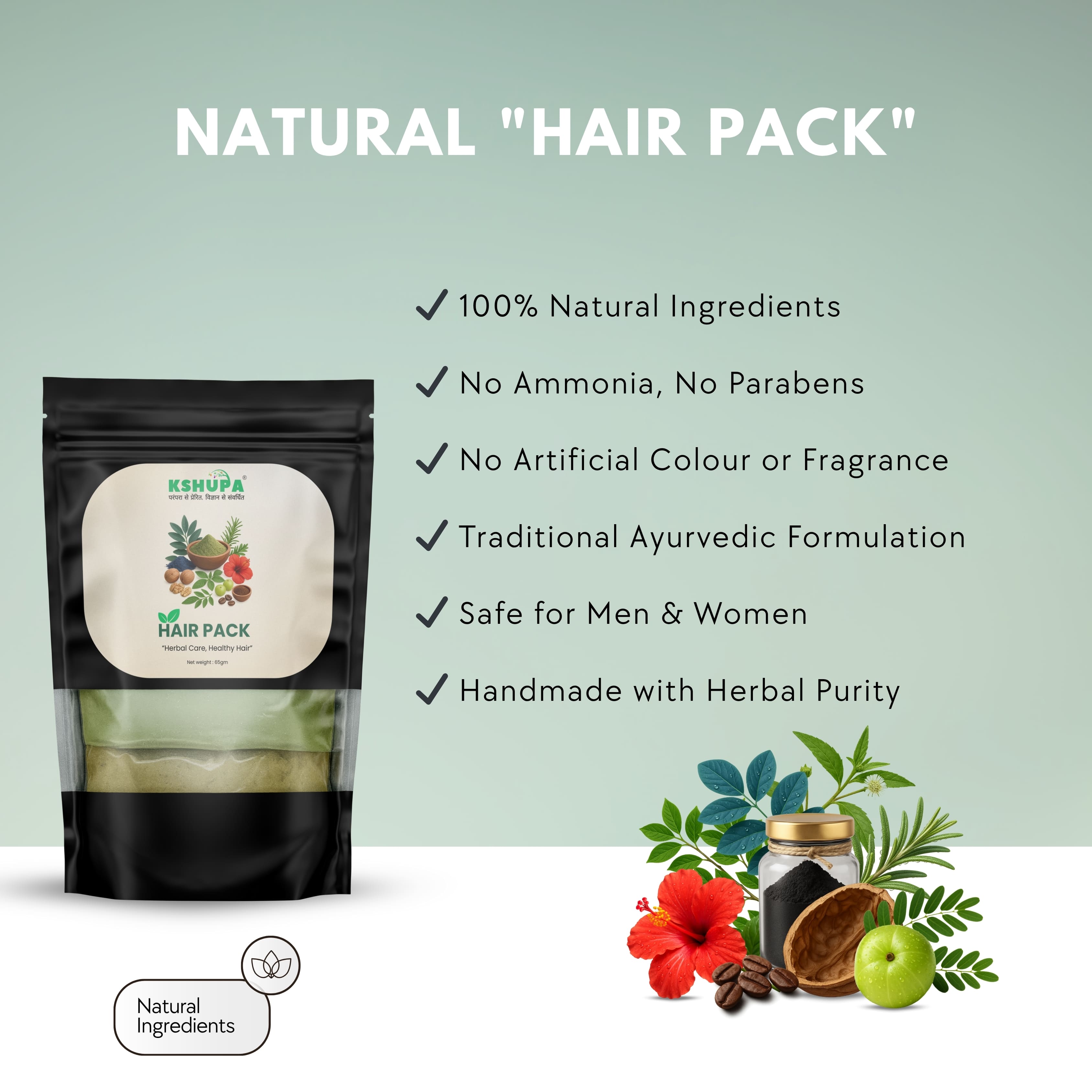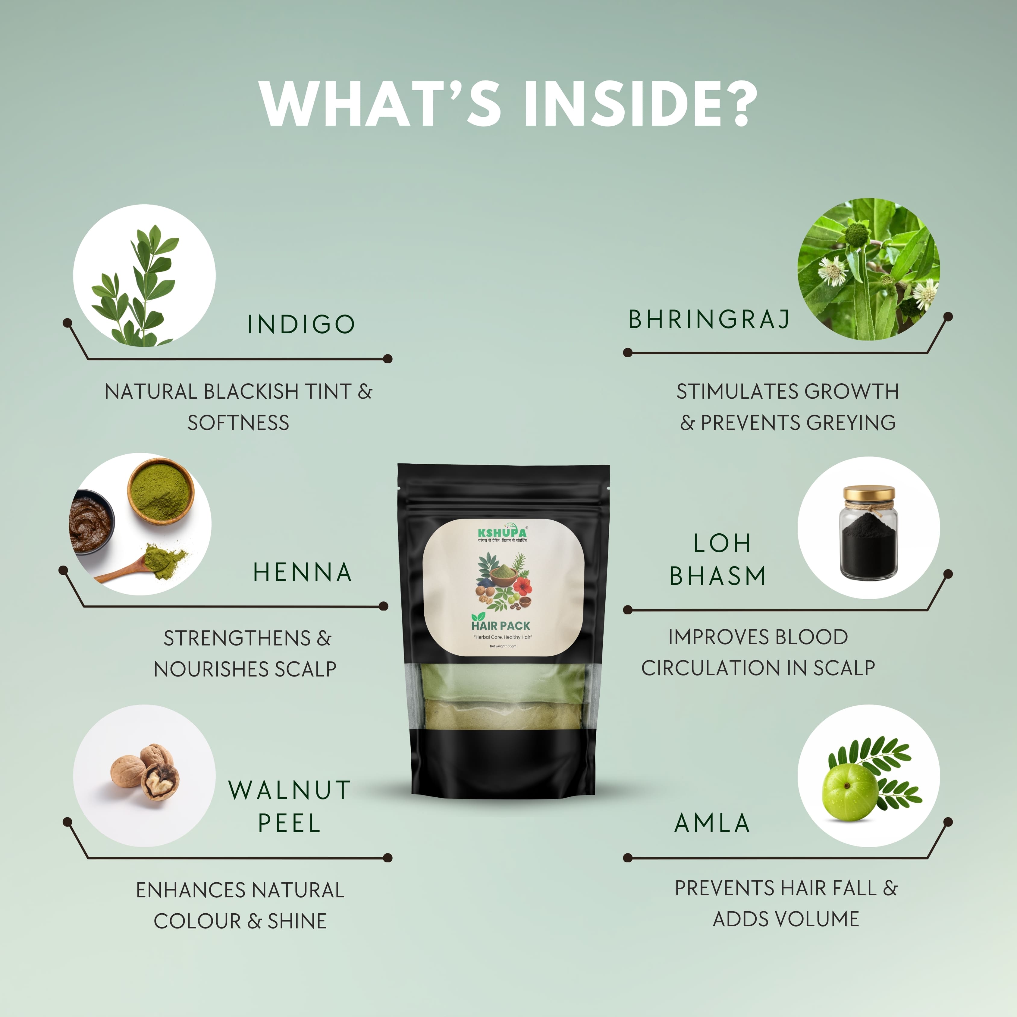 Natural Ayurvedic Hair Pack ∣ Ammonia-Free Indigo, Henna & Amla for Strength, Shine & Greying Control. | 65 GM