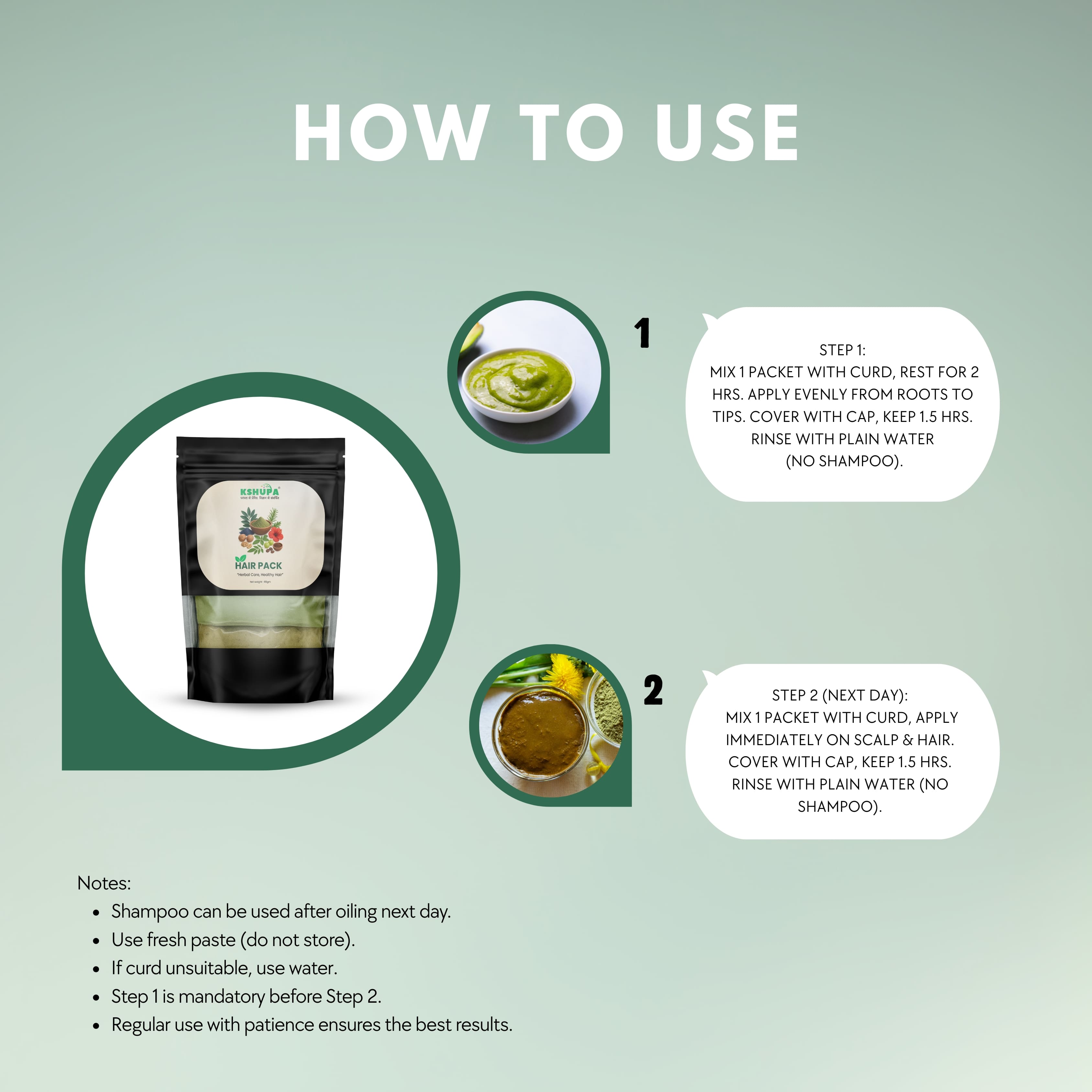 - Step 1: Mix powder with curd, apply for 1.5 hrs, and rinse with plain water only.