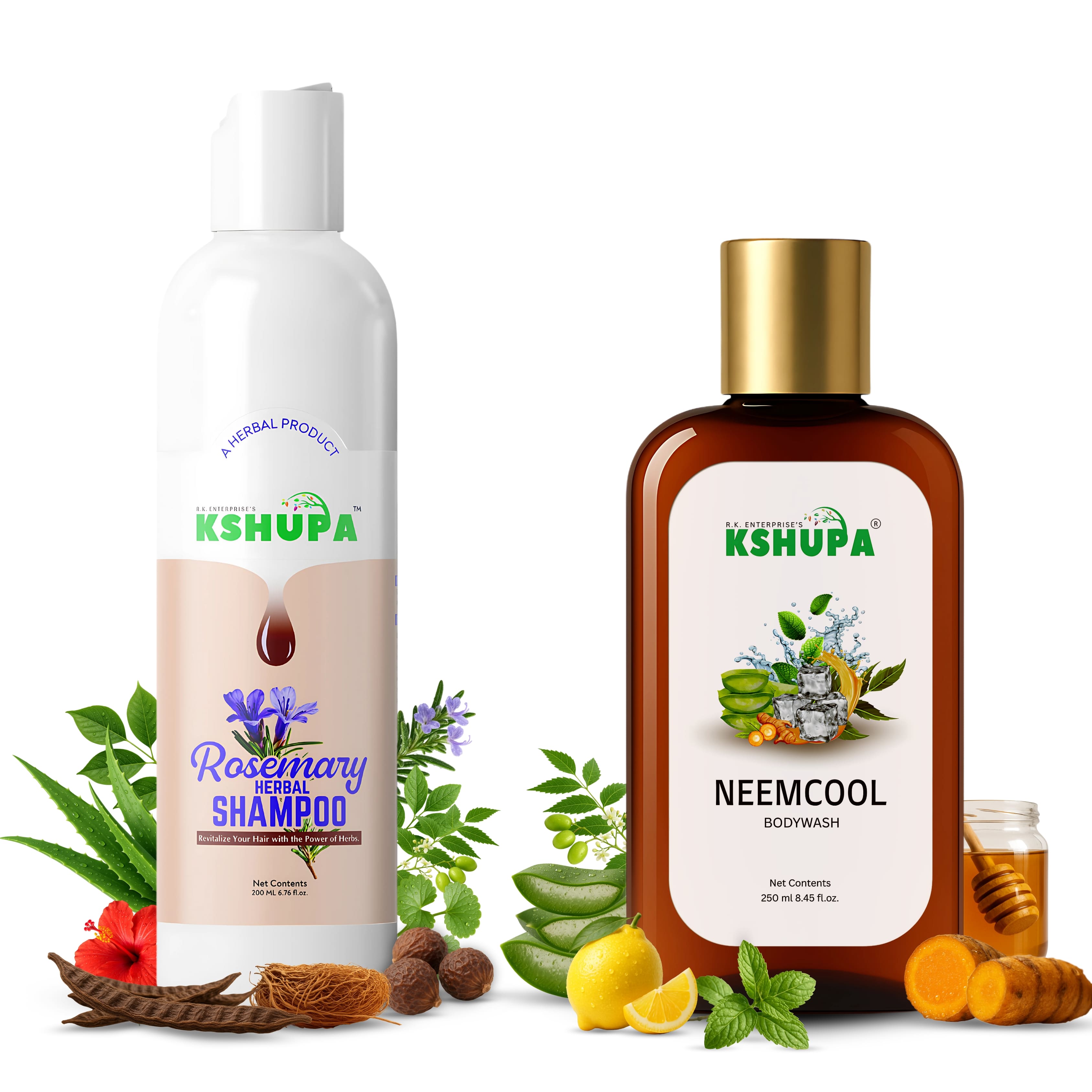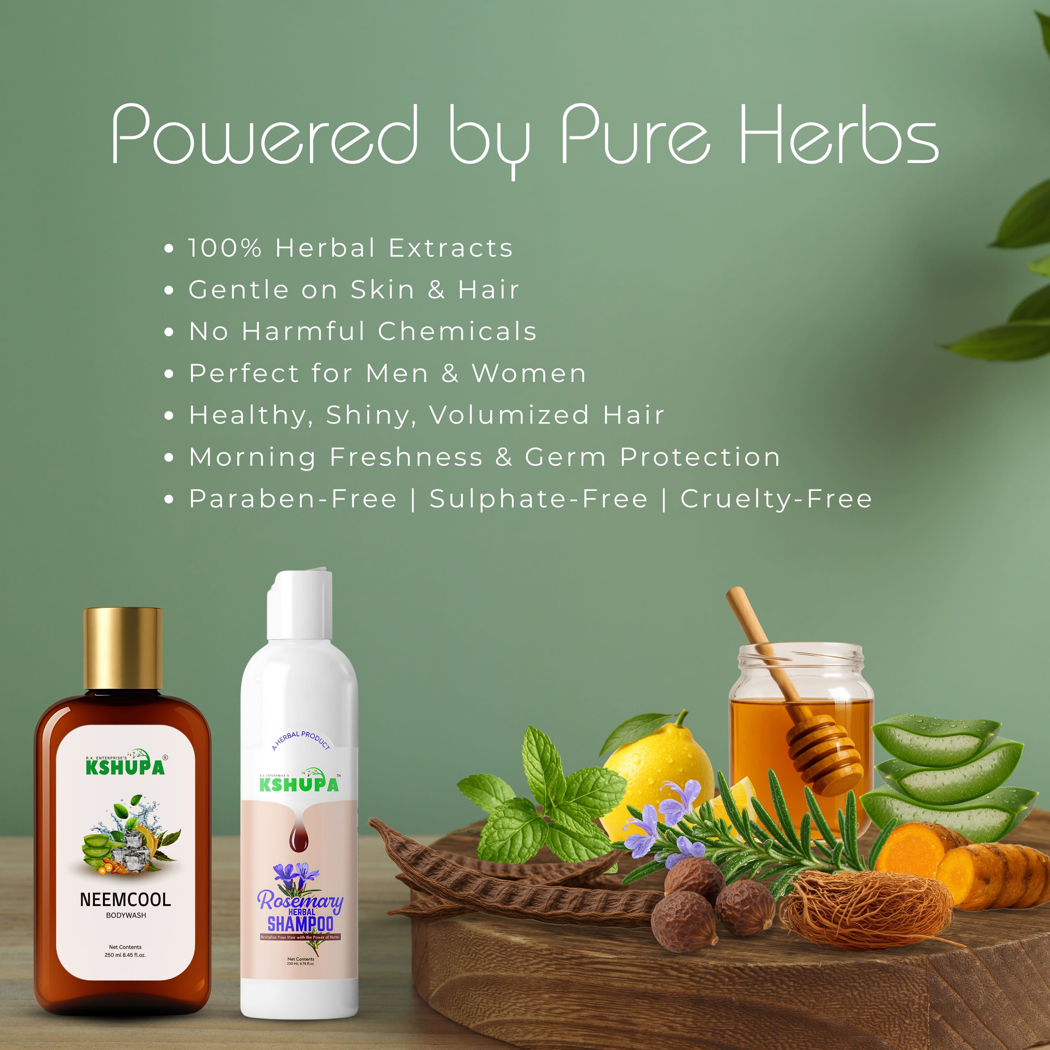 HERBAL HAIR & BODY CARE COMBO | Neem Cool Body Wash (250ml) + Rosemary Shampoo (200ml) | Dandruff Control & Skin Freshness