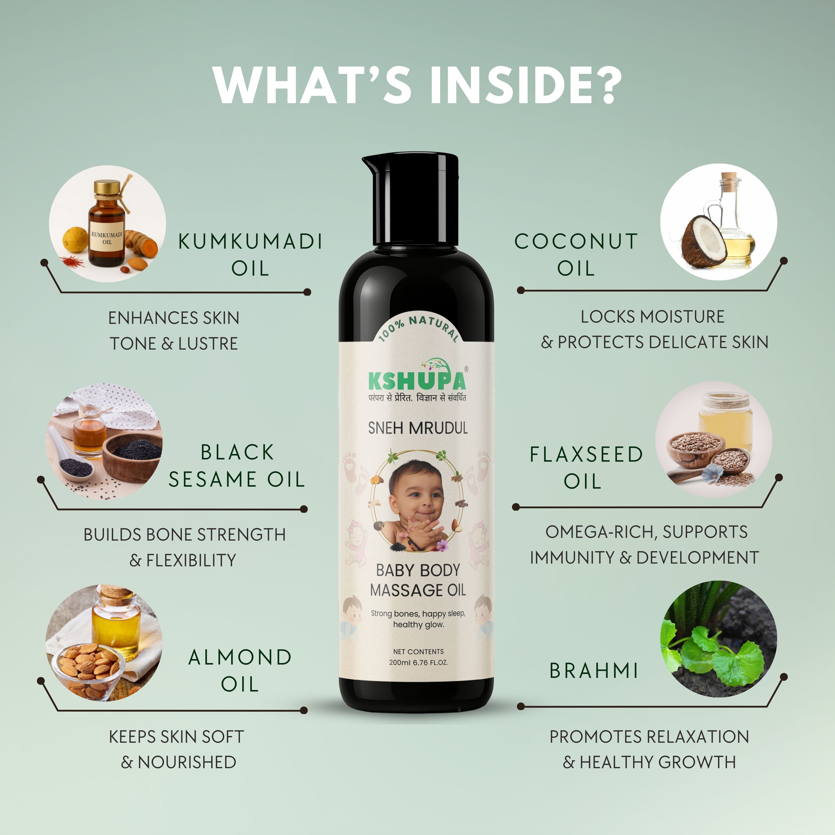 Sneh Mrudul Baby Massage Oil | Ayurvedic Cold-Pressed Oils for Strong Bones, Immunity & Happy Sleep