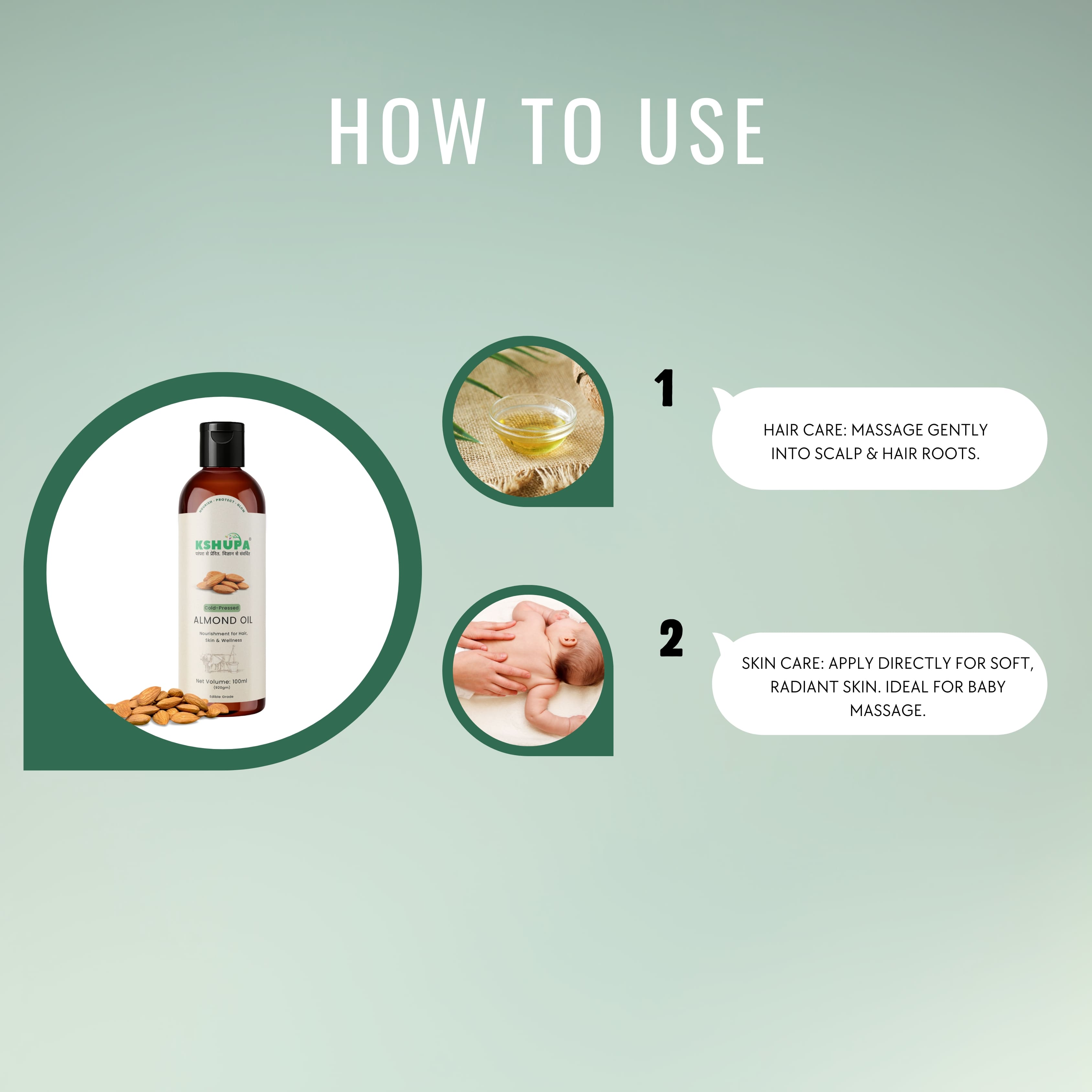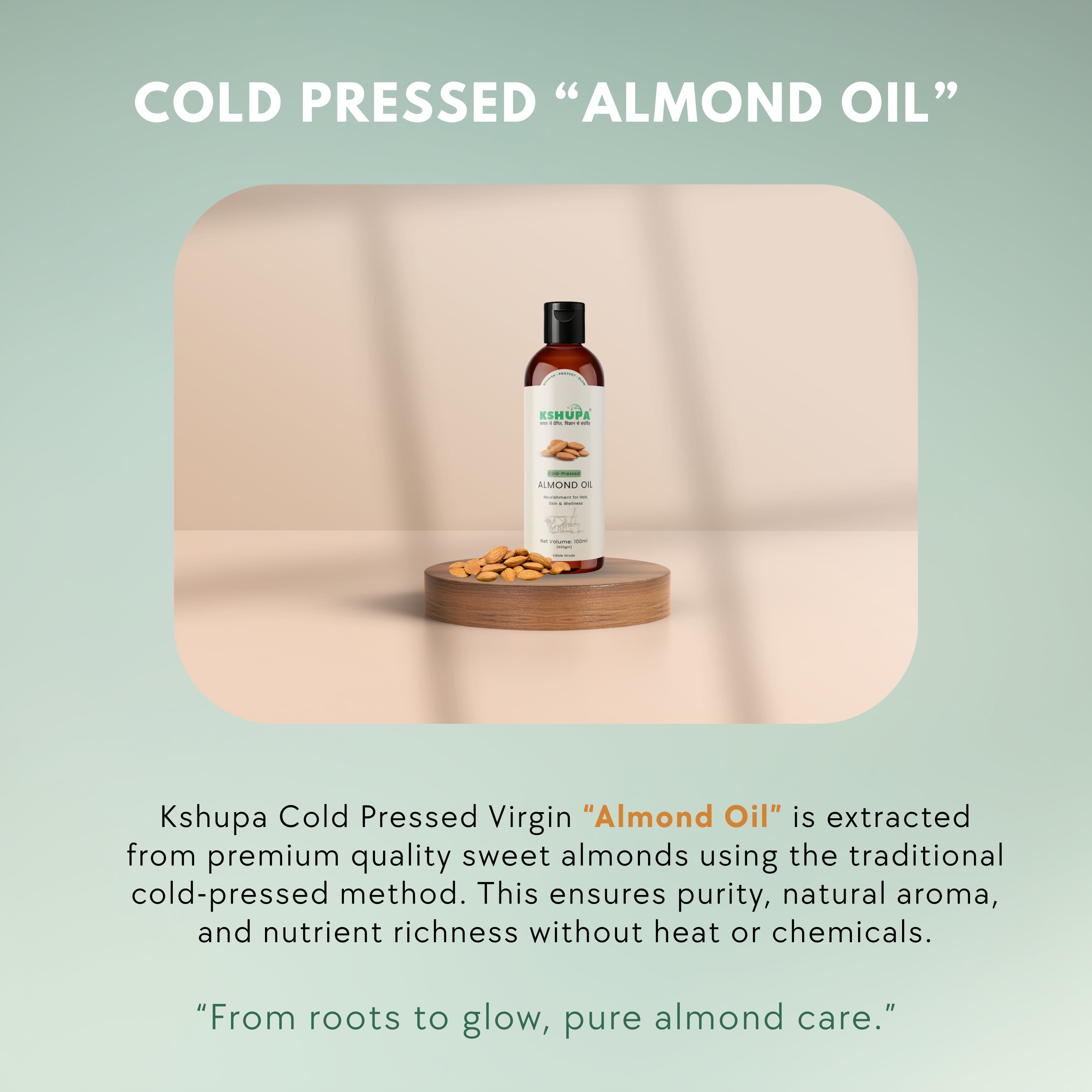 Cold-Pressed SWEET ALMOND OIL ∣ Pure Vitamin E for Dark Circles, Anti-Aging & Hair Shine